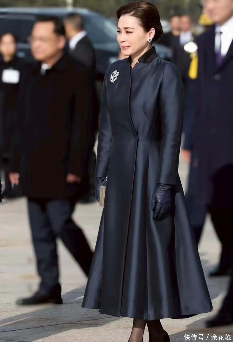 #创作训练营2期开营啦#11月21日,泰国王后苏提达在曼谷看展,穿搭又是一种风格:靛蓝色羊毛披肩,黑白竖纹长裙,礼服款。中式的盘发,依旧笑容可掬,仍然优雅大方,现场是一片靛蓝色的海洋,这应该是这一季服装秀的主色调。